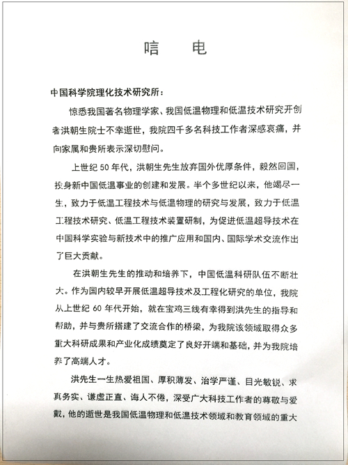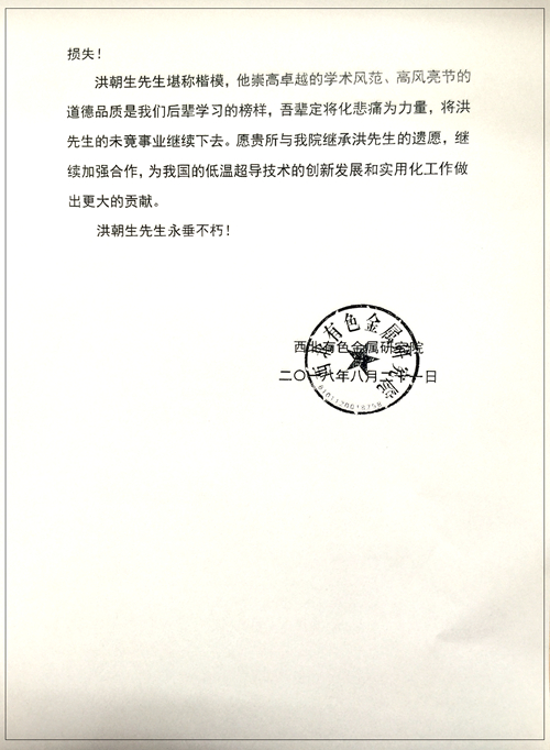 西北有色金屬研究院唁電