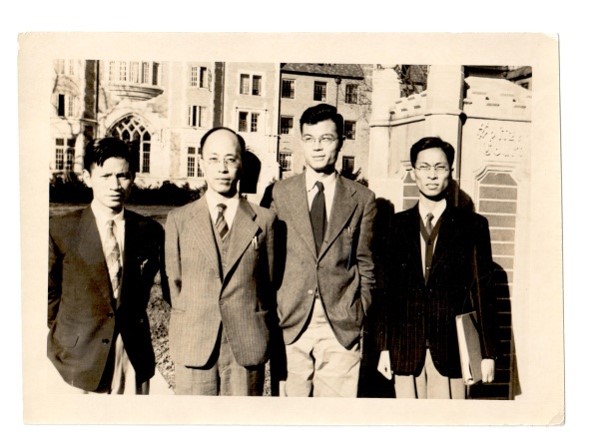 1949年,洪朝生與范緒筠、陳志忠、王補宣在普渡大學(xué)